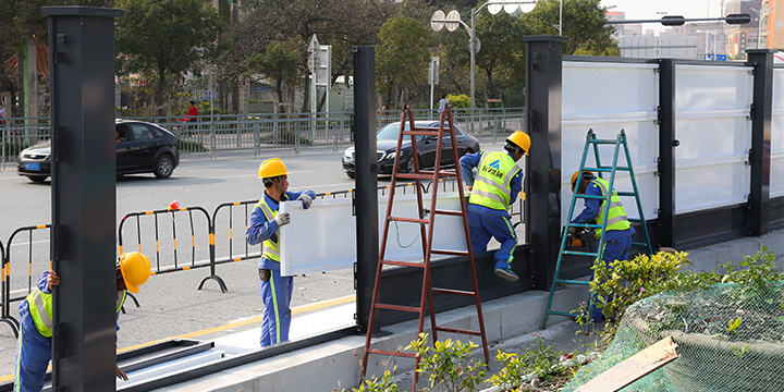 施工圍擋采用優(yōu)質(zhì)的鋼材和精湛的焊接、噴涂技術(shù),使用不同的圍擋立柱和連接方式,抗風(fēng)能力強(qiáng),滿足圍擋的安全性和經(jīng)濟(jì)性。